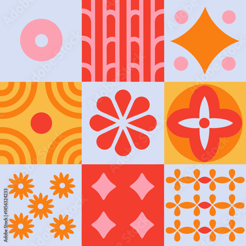 Vector set of brutalist geometric shapes. Naive playful shapes.Abstract minimalist figures, stars, flowes.Vector