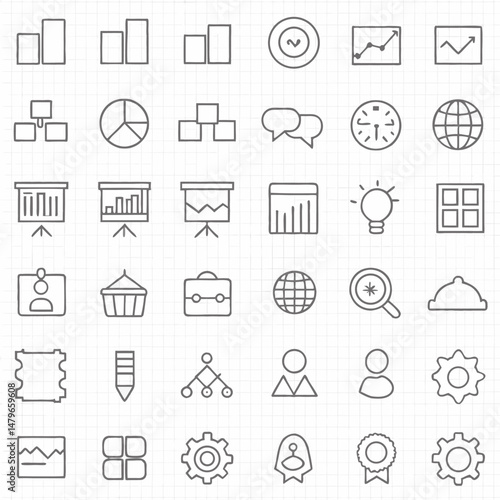 Vector Set of Business Icons for Web Finance Office and Document Design