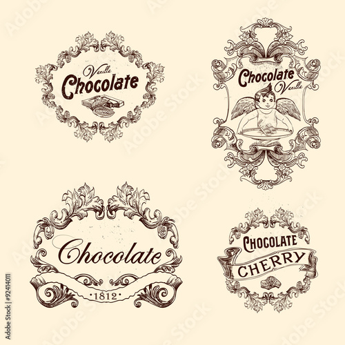 Vector set of chocolate labels, design elements, emblems and badges. Isolated logos illustration in vintage style