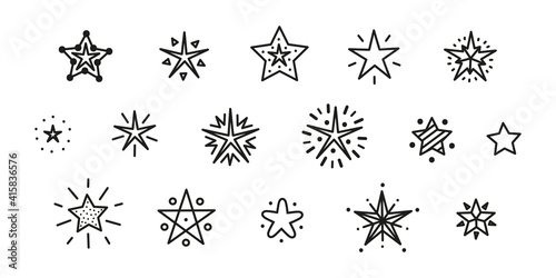 Vector Set of Cute Stars. Different Star Icons. Black and White Illustration