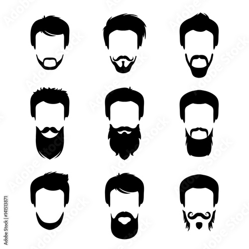 Vector set of different men hipster haircuts, beard, mustache icons in trendy flat style. Man faces images.