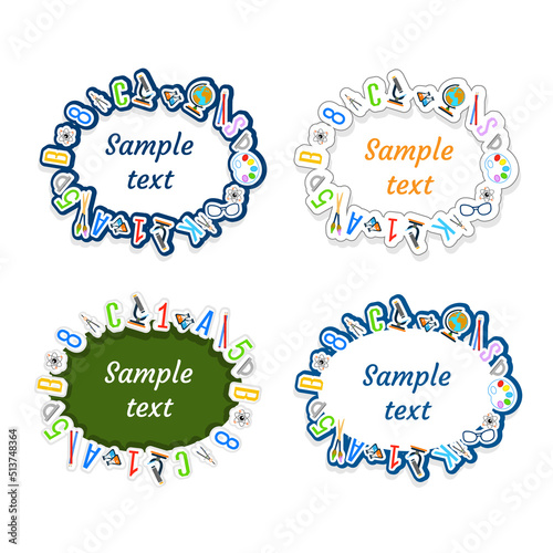 Vector set of funny school frames made of school items and copy space for text. Back to school. Templates for flyer, poster and advertising decoration.