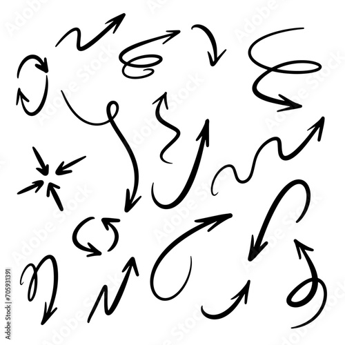 Vector set of hand drawn arrows. Black arrows isolated on white background.