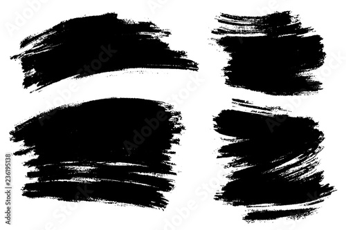 Vector set of hand drawn brush strokes, stains for backdrops. Monochrome design elements set. One color monochrome artistic hand drawn backgrounds.