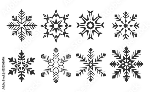 Vector Set of Hand Drawn Snowflakes – Winter Geometric Line Art Design