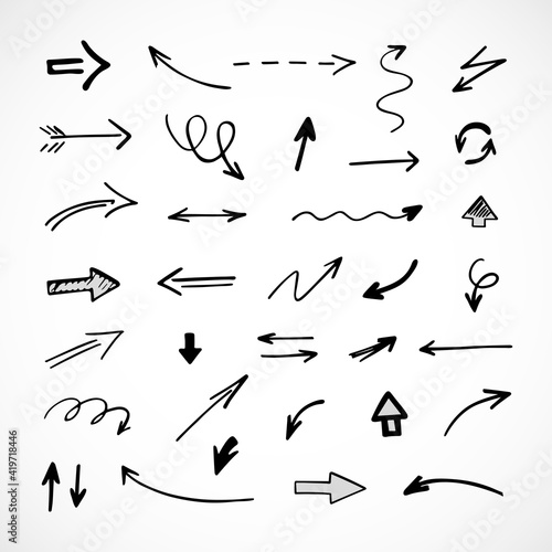 Vector set of hand-drawn arrows, elements for presentation