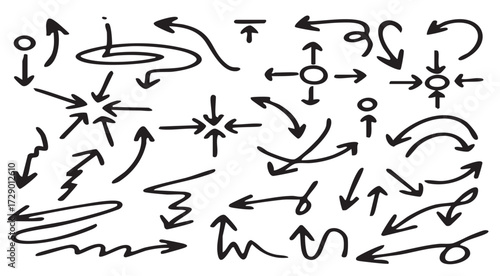 vector set of ink line and arrow iicon and doodles for decoration, hard color vector set