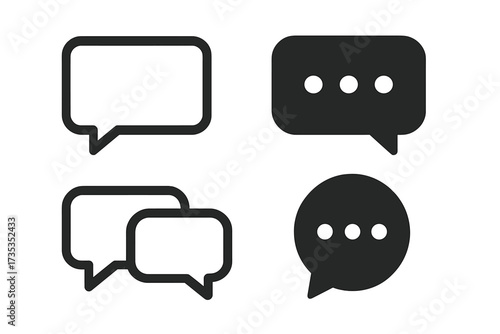 Vector set of message bubble icons for chat applications and websites. Communication and dialogue concept. Speech bubbles, comment boxes, and social media graphic elements.