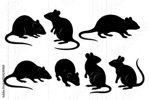 Vector Set of Rat Silhouettes on White Background