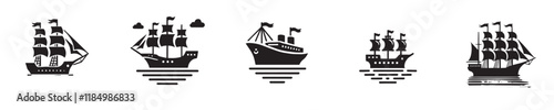 Vector set of sea ship silhouette icons