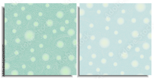 Vector set of seamless patterns with manual drawing of curved lines, winters geometric patterns in the technique of doodles and zenart, continuous, snowflakes, soft colors, blue and frosty background.