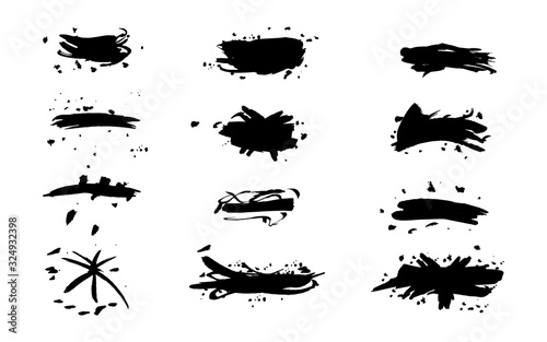Vector set of splash stains texture banners. Black and white abstract vector illustration. Ink splatter stencil - vector set. Vector grunge silhouette dirty liquid color collection.