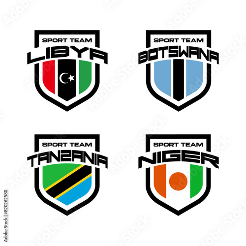 Vector set of sport logo with national teams. Football sings for tournament isolated on white background. Libya, Botswana, Tanzania, Niger.