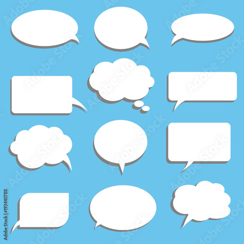 Vector set of stickers of speech bubbles. Blank empty white speech bubbles