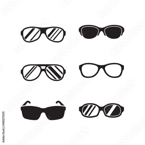 vector set of stylish sunglasses and eye glass silhouette icons design illustrations