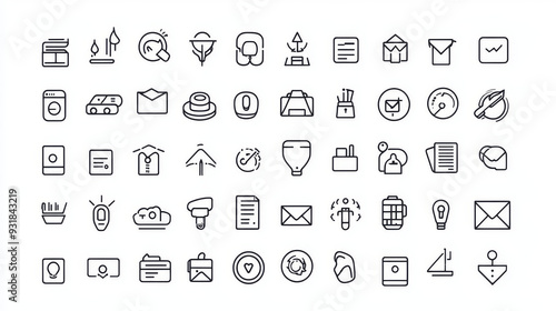 Vector set of thin line mini icons, featuring simple outlines on a 24x24px grid. Pixel-perfect design with editable strokes.