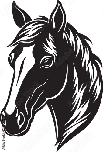 Vector silhouette of a black horse head against a plain white background, emphasizing its graceful features