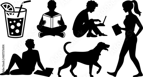 Vector silhouette of vector art of silhouettes of people relaxing and reading isolated on white background
