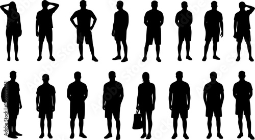 Vector silhouettes men and women, illustration. Silhouettes of young people posing in casual clothes. EPS 10 version.