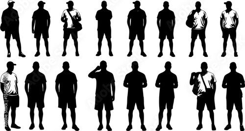 Vector silhouettes of men, illustration. Silhouettes of young people posing in casual clothes. EPS 10 version.