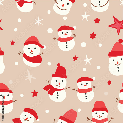 Vector Simple Christmas pattern of stylized snowmen and stars