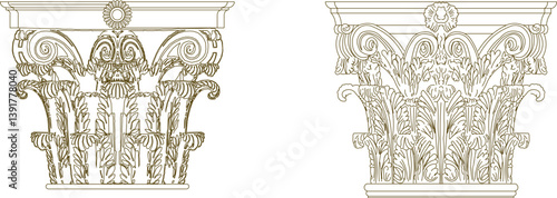 vector sketch illustration silhouette design detail drawing column head Neoclassical Style Decor classic vintage roman greek