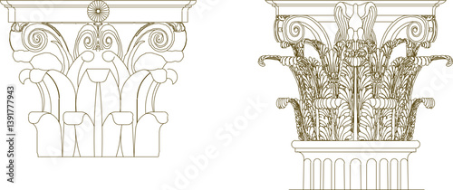 vector sketch illustration silhouette design detail drawing column head Neoclassical Style Decor classic vintage roman greek