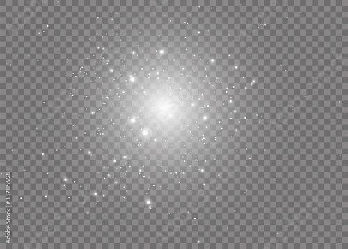 Vector sparkles on a transparent background. Christmas abstract pattern. Sparkling magical dust particles.