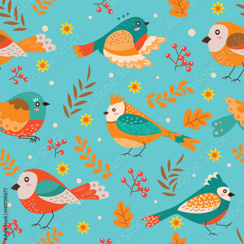 Vector spring bird pattern illustration
