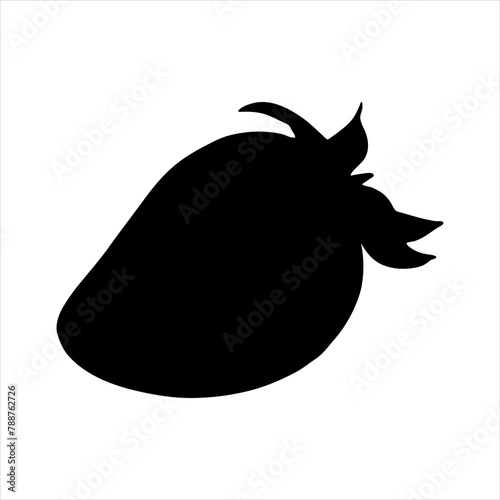 Vector strawberry silhouette illustration, hand drawn botanical outline drawing, monochrome strawberry icon. Design element for background, pattern, packaging, icon, logo.