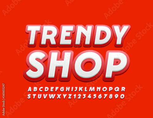 Vector stylish Emblem Trendy Shop. Modern Bright Font. Creative Alphabet Letters and Numbers