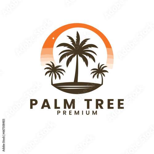 Vector summer palm tree icon and travel logo vector illustration