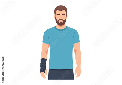 Vector SVG Illustration of Man with Arm Cast in Minimalist Flat Style Featuring Human Figure with Beard and Casual Clothing for Digital Media
