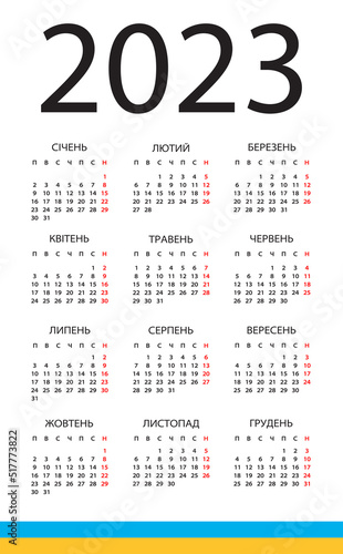 Vector template illustration of color 2023 calendar - Ukrainian version