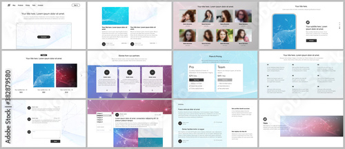 Vector templates for website design, presentations, portfolio. Templates for presentation slides, flyer, leaflet, brochure cover, report. Polygonal science background with connecting dots and lines.