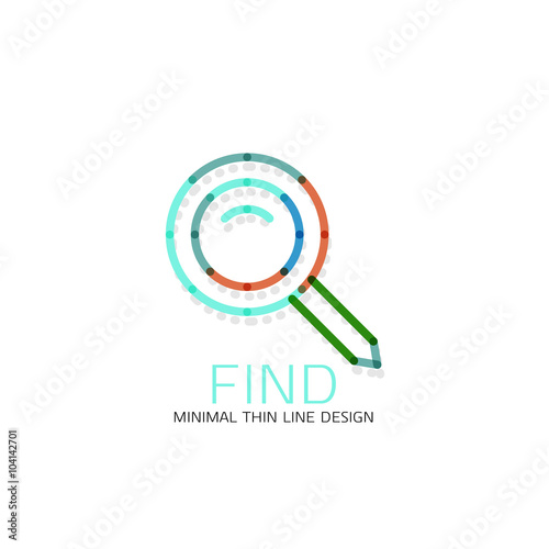 Vector thin line design logo magnifying glass, search and find or zoom logotype concept. Linear minimalistic business icon