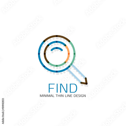 Vector thin line design logo magnifying glass, search and find or zoom logotype concept. Linear minimalistic business icon