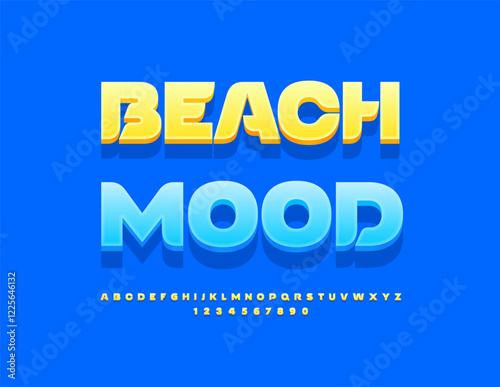 Vector Touristic concept Beach Mood. Sunny Yellow 3D Font. Beautiful Alphabet Letters and Numbers set.