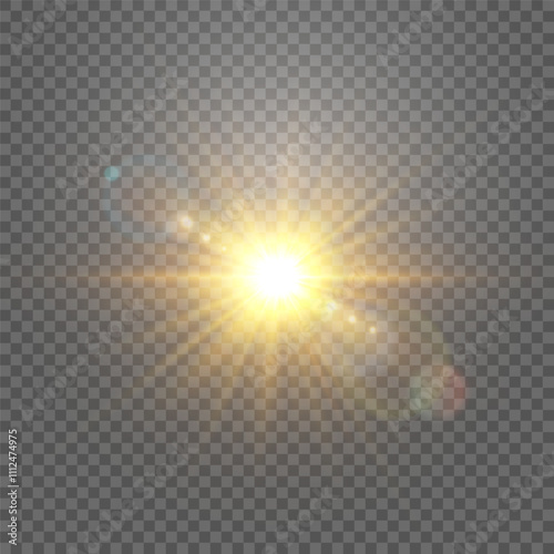 Vector transparent sunlight, special flash light effect. Glow light effect, bright sun or spotlight beams. Light png. Decor element isolated on transparent background