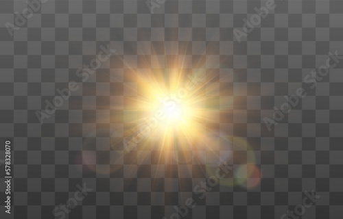 Vector transparent sunlight, special flash light effect. Glow light effect, bright sun or spotlight beams. Light png. Decor element isolated on transparent background.