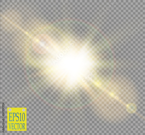 Vector transparent sunlight special lens flare light effect. Sun flash with rays and spotlight