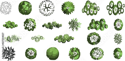 Vector tree top watercolor hand drawn view isolated on white background for landscape plan
