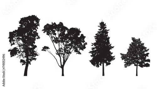 Vector trees in silhouettes. Vector black trees set on white background.