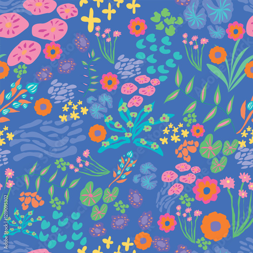 Vector Tropical Ditsy Seamless Pattern