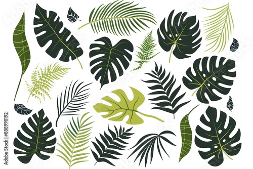 Vector tropical leaf collection: monstera and palm leaves in various shapes, perfect for design projects - Generative ai