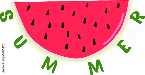 Vector watermelon icon, juicy watermelon slice colored illustration, summer.