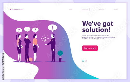 Vector web page design template - complex business solution, project support, online consult, modern technology, service, time management, planning. Landing page. Mobile app. Flat concept illustration