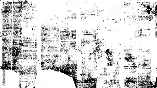 Vector white and black newspaper paper grunge vintage old aged texture. Vintage grunge newspaper collage background.