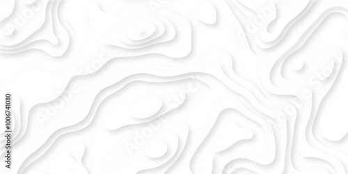 Vector white art papercut design Topographic geometric map relief texture with curved layers. Abstract luxury white modern 3d papercut, topography map circle and wave line smooth.