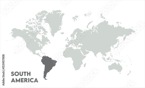 Vector world map with South America-07, Map of South America, highlighted on the world map, South America on the world map, Satellite view, South America's location on the globe.